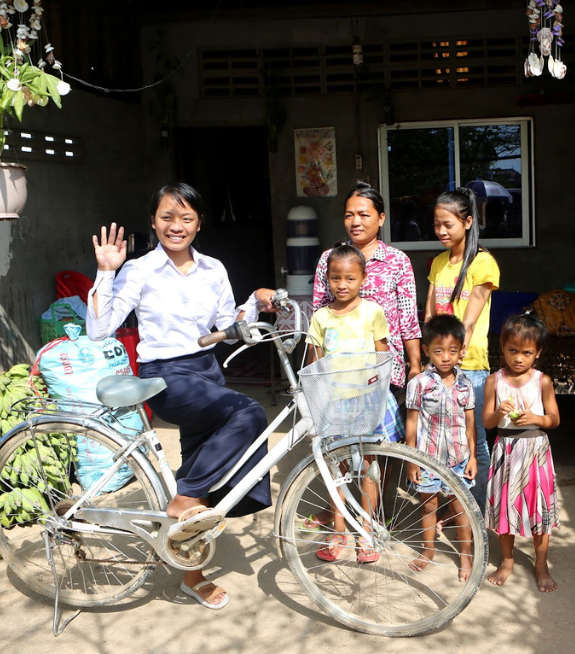 Providing rice to the families and bicycles to the girls keeps them nourished and able to get to school safely